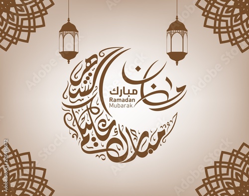 Ramadan Kareem Greeting Card Ramadhan Mubarak Eid Mubarak Creative Arabic Islamic Calligraphy Of Text Ramadan Kareem In Crescent Moon Shape With Lamp For Holy Month Of Muslim Community Festival Buy This - Download this premium vector about arabic calligraphy text ramadan mubarak., and discover more than 11 million professional graphic resources on freepik.