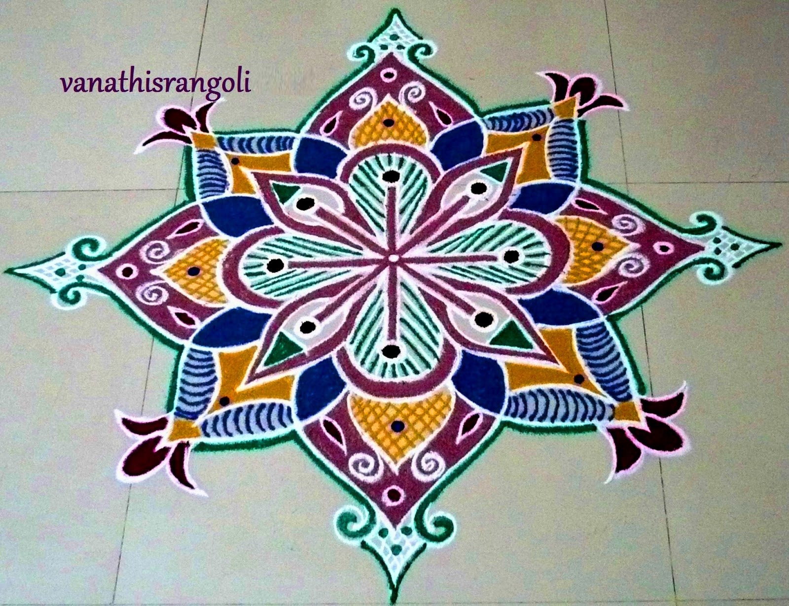 Vanathi S Rangoli Art And Crafts Colorful Simple Freehand Rangoli Design - Start from any structure like curve, bend, leaf etc.