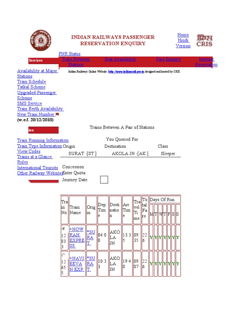 Indian Railways Quotas - You can find information about the indian railway passenger reservation enquiry.