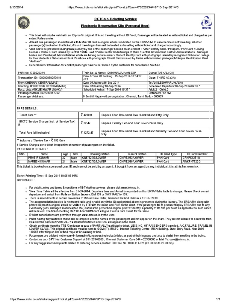 Https Www Irctc Co In Eticketing Printticket Identity Document Ticket Admission - You can sms your pnr number to indian railways and then you will get a response back with reservation details including train information.